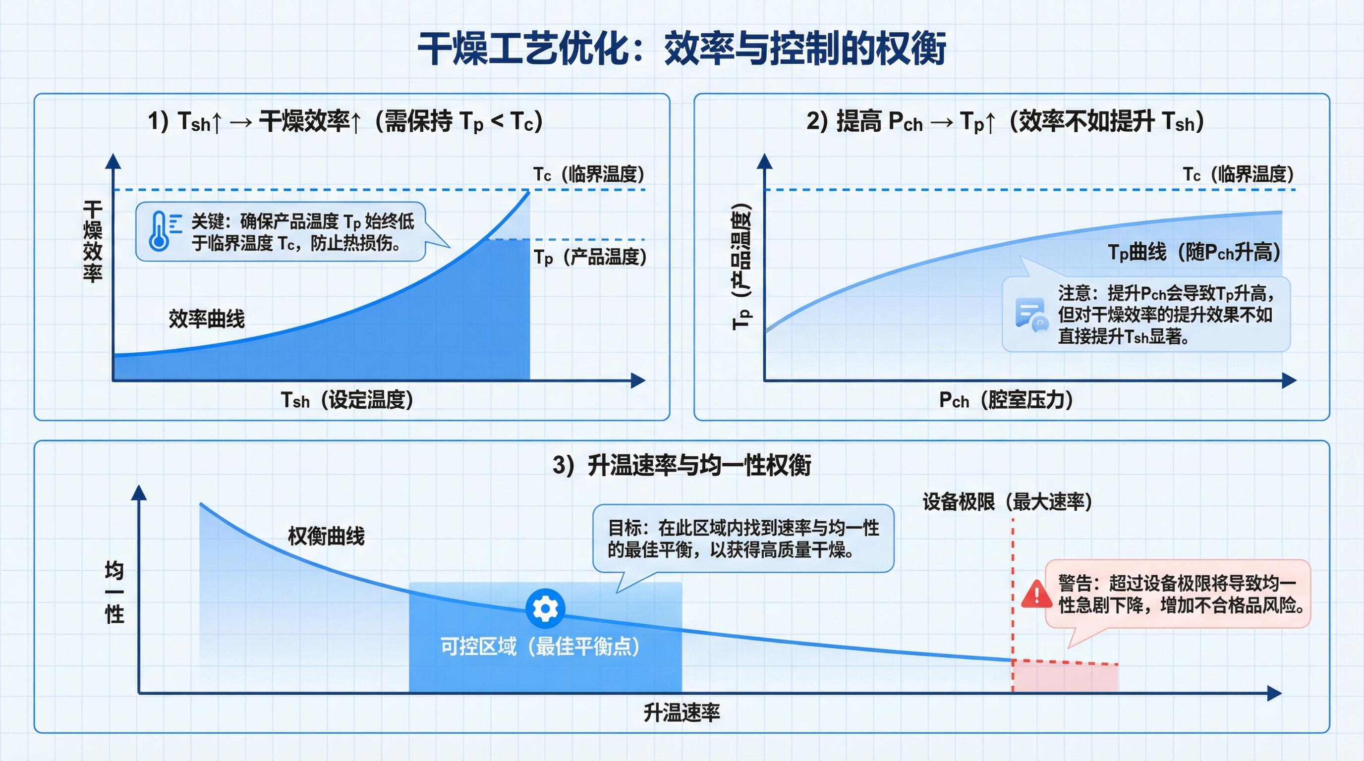 - 关键参数:Tsh、Pch 与升温速率;Pch 通常与一次干燥保持一致即可。